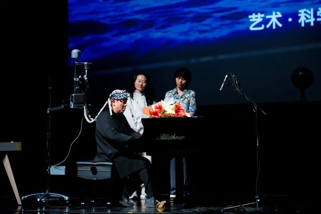 本場音樂會也得到了清華大學(xué)腦與智能實驗室(簡稱THBI)的深度參與,將音樂腦科學(xué)實驗搬到了劇場,用近紅外光譜腦功能成像設(shè)備同步記錄了孔祥東先生與臺下六位聽眾的大腦活動。音樂會結(jié)束,THBI首席科學(xué)家王小勤教授上臺與觀眾分享了音樂腦科學(xué)的相關(guān)知識以及現(xiàn)場所采集的最新圖像,希望探究藝術(shù)家即興創(chuàng)作這一富有創(chuàng)造力的活動以及作為觀眾在審美過程中的大腦機制。作為被研究對象,孔祥東先生表示,自己非常有意愿持續(xù)參與音樂腦科學(xué)的相關(guān)研究,希望可以與科學(xué)家們共同攜手一起探索音樂與人類大腦的關(guān)系。