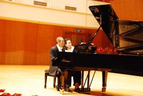 素有“六朝古都”之稱的南京,非常吸引第一次來中國的鋼琴家陳佩雯女士,他們在音樂會開始之前還參觀了南京非常具有特色的景點,直到音樂會開始之前,他們還在細(xì)細(xì)回味并討論著…… 2010年8月6日晚19:30,亞歷山大·帕雷中國巡演最后一站在南京音樂學(xué)院音樂廳正式舉行,觀眾們也是早早入場等候著。都期待一場精彩、不同尋常的音樂會。尤其是德國國寶博蘭斯勒鋼琴的黃金音色一直未能親眼所見,親耳所聽。這次難得有機(jī)會使得大家期待變得無比神圣,亞歷山大.帕雷似乎也感受到了大家的熱情,南京作為他中國巡演的最后一站,讓他似乎有種難舍之情,這種情感他無法用言語表達(dá),但是,在演奏中他將這種情感表現(xiàn)得淋漓盡致,觀眾們一次次的“安可”是他最好的證明!
