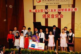 由德國(guó)博蘭斯勒鋼琴公司提供的一臺(tái)價(jià)值3萬(wàn)元的德國(guó)歐米勒立式鋼琴被第二屆全國(guó)少兒(業(yè)余)鋼琴展演比賽評(píng)委會(huì)設(shè)置為“演奏特別大獎(jiǎng)”,最終,由深圳鋼琴學(xué)會(huì)選送的9歲黃芷儀小朋友以《兒童組曲》獲得。第二屆全國(guó)少兒(業(yè)余)鋼琴展演比賽頒獎(jiǎng)音樂(lè)會(huì)在鼓浪嶼音樂(lè)廳舉辦。在頒獎(jiǎng)典禮后,10名金獎(jiǎng)得主各自演奏了一首樂(lè)曲。這場(chǎng)音樂(lè)會(huì)實(shí)際上是“優(yōu)中選優(yōu)”,最終9-10歲組金獎(jiǎng)獲得者黃芷儀摘取音樂(lè)會(huì)“演奏特別大獎(jiǎng)”。 在聽(tīng)過(guò)所有金獎(jiǎng)選手演奏后,評(píng)委現(xiàn)場(chǎng)評(píng)出這個(gè)獎(jiǎng)項(xiàng),而獲獎(jiǎng)?wù)唿S芷儀上臺(tái)時(shí),都還弄不清自己竟然贏得了此獎(jiǎng)項(xiàng)的獎(jiǎng)品——價(jià)值3萬(wàn)元的德國(guó)博蘭斯勒歐米勒立式鋼琴。第二屆全國(guó)少兒(業(yè)余)鋼琴展演比賽評(píng)委之一,廈門(mén)大學(xué)藝術(shù)學(xué)院李未明教授表示,黃芷儀的演奏“音樂(lè)表達(dá)特別好。不同的曲子都能處理得極其細(xì)膩,把握好各自不同的音樂(lè)風(fēng)格,音樂(lè)很感動(dòng)人”。黃芷儀來(lái)自深圳,是名師但昭義的學(xué)生。