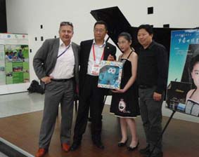 羅維在現(xiàn)場(chǎng)演奏了《莫扎特330奏鳴曲》、《瀏陽河》、《拉赫瑪尼諾夫》、《愛之喜悅愛之憂傷》等多首曲目。優(yōu)美的旋律、德國(guó)國(guó)寶-博蘭斯勒鋼琴黃金般的音色,讓現(xiàn)場(chǎng)觀眾大飽耳福?,F(xiàn)場(chǎng)座無虛席,絡(luò)繹進(jìn)館的游客都被這美妙的琴聲深深吸引,駐足停留欣賞。世博會(huì)主題館部章克勤部長(zhǎng)、主題館設(shè)計(jì)德國(guó)設(shè)計(jì)公司總經(jīng)理雷曼先生及博蘭斯勒鋼琴中國(guó)區(qū)總經(jīng)理方陽先生也到場(chǎng)欣賞了羅維的精彩表演。演出結(jié)束后章克勤部長(zhǎng)送給羅維小朋友一個(gè)世博吉祥物-海寶作為六一兒童節(jié)的禮物并祝演出成功。