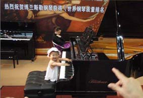 此次博蘭斯勒鋼琴展會(huì)現(xiàn)場展出了價(jià)值300多萬的博蘭斯勒155周年紀(jì)念版鋼琴。此臺(tái)鋼琴也可謂是博蘭斯勒鋼琴百年精湛工藝的一個(gè)縮影。這款特別的尤里烏斯·博蘭斯勒紀(jì)念版鋼琴,是公司成立155周年之際,為紀(jì)念尤里烏斯·博蘭斯勒對音樂的巨大貢獻(xiàn),并為他給博蘭斯勒家族留下流傳百年的無價(jià)世襲遺產(chǎn)表示深深的崇敬而特地制作的。博蘭斯勒家族后代對先人所取得的偉大成就和貢獻(xiàn)的崇拜、感激之情都深深凝聚在這架鋼琴上。博蘭斯勒鋼琴重要獎(jiǎng)項(xiàng)都銘刻在這架尤里烏斯.博蘭斯勒紀(jì)念版的徽章上,做工考究的譜架和琴腿盡顯鋼琴的優(yōu)雅典美,制作大師近乎苛刻的精細(xì)工藝,每一個(gè)細(xì)節(jié)都力求完美,使得這架鋼琴散發(fā)出令人著迷的藝術(shù)風(fēng)采,吸引了眾多觀眾與之留念,反響熱烈,贊嘆喜愛之前溢于言表。