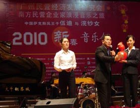 南國的三月,已聞到春天溫暖氣息,春意綠滿枝頭,國內(nèi)首次 以民營企業(yè)家為主題的浪漫音樂之旅就在廣州的鳥語花香里琴聲悠 揚(yáng)。為使得此次音樂之旅更加浪漫美妙,鋼琴支持商大千鋼琴城甚 至出動了他們的鎮(zhèn)店之寶——有鋼琴中的“勞斯萊斯”美譽(yù)的德國 國寶-博蘭斯勒鋼琴與中國薩克斯風(fēng)王子伍迪領(lǐng)軍張藝謀打造的“奧 運(yùn)寶貝”中國民樂浣紗女組合來了一次激情的碰撞:動人的音樂、 激揚(yáng)的舞蹈、絢麗的服飾,一場中國傳統(tǒng)音樂與西洋音樂的邂逅, 慈善的愛心將帶給民營企業(yè)家新春最有意義和最浪漫的體驗(yàn)。晚會 現(xiàn)場有廣東省政協(xié)副主席、省婦聯(lián)主席溫蘭子,原廣東省政協(xié)副主 席石安海,原廣州市副市長劉念祖,原廣州市副市長陳綺綺,原廣 州市副市長姚蓉賓,廣東省社會科學(xué)院院長梁桂全,廣東省知識產(chǎn) 權(quán)局局長陶凱元,廣東省教育廳巡視員李小魯,廣東省中小企業(yè)局 局長張文獻(xiàn),廣東省委辦公廳副巡視員陳星智,廣東省婦聯(lián)副巡視 員張麗玲,廣東省社科聯(lián)副主席省文化學(xué)會會長李明華博士,廣東 省工商聯(lián)副主席李陽春,廣州市社科聯(lián)主席顧澗清,廣州市工商聯(lián) 副主席吳永洋,廣州市體育局副局長方達(dá)兒,廣州市體育局副局長 關(guān)渭貞,廣東省商業(yè)聯(lián)合會常務(wù)副會長袁偉英女士,增城市副市長 葉鴻,廣州民營經(jīng)濟(jì)發(fā)展研究會創(chuàng)會會長解聘如、王銳,執(zhí)行會長 黃學(xué)明,常務(wù)副會長彭澎以及有關(guān)部門的領(lǐng)導(dǎo)蒞臨觀摩。并且該活 動從社會責(zé)任感和公益角度出發(fā),音樂會加入了一個特別有意義的 “溫暖行動”拍賣單元——“救助一位孤兒,改寫一個人生”。其 由廣東省婦女聯(lián)合會、廣東省婦女兒童基金會、廣東省兒童福利會 共同組織的一項(xiàng)極具社會意義的活動。而博蘭斯勒鋼琴也為能在如 此重大意義的活動上獻(xiàn)上自己的“黃金音色”而深感榮幸!