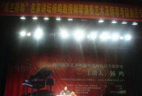 2009年11月22日下午14:00,由德國博蘭斯勒基金會、博 蘭斯勒鋼琴(中國)有限公司、重慶音樂家協(xié)會鋼琴專業(yè)委員會、 西南大學(xué)音樂學(xué)院、重慶大學(xué)藝術(shù)系、重慶師范大學(xué)音樂學(xué)院、重 慶文理學(xué)院音樂學(xué)院、重慶長江師范學(xué)院音樂學(xué)院及重慶提多名師 藝術(shù)培訓(xùn)基地聯(lián)合主辦,45家培訓(xùn)中心及琴行協(xié)辦并由重慶提多 鋼琴城及重慶文化宮藝術(shù)培訓(xùn)學(xué)校聯(lián)合承辦的中央音樂學(xué)院鼓浪嶼 鋼琴學(xué)校校長、中央音樂學(xué)院原鋼琴系主任楊鳴教授《鋼琴演奏藝 術(shù)及鋼琴考級曲目》專題講座在重慶市文化宮禮堂隆重舉行。