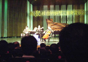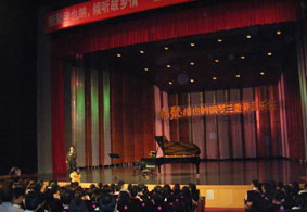 2009年7月中旬由德中同行-歐米勒鋼琴公開賽冠軍得主-歐米 勒公主翁惠慧,旅奧小提琴家王小明及來自奧地利的大提琴家皮奧 特·斯克威爾斯攜手在佛山順德最大的音樂中心舉辦《維也納鋼琴 三重奏音樂會(huì)》令歐米勒公主翁惠慧的家鄉(xiāng)順德的鄉(xiāng)親在短短的兩 個(gè)小時(shí)里欣賞到具有國際水準(zhǔn)的高雅音樂會(huì)。此次音樂會(huì)吸引了壹 仟肆佰多名市民前來聆聽,整個(gè)音樂廳座無虛席。