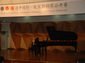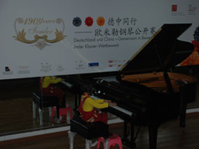 十二月十三日,德中同行—?dú)W米勒鋼琴公開賽總決賽在廣州 大學(xué)城正式拉開序幕。4臺(tái)九尺博蘭斯勒及博蘭斯勒旗下海斯勒, 歐米勒總價(jià)值過千萬名琴匯聚廣州大學(xué)城。此次大賽的比賽、表 演用琴全部由博蘭斯勒公司提供。被譽(yù)為德國(guó)國(guó)寶的博蘭斯勒為了 支持本次大賽,并能讓選手能更好的發(fā)揮出自己的琴藝,特地從德 國(guó)空運(yùn)到比賽現(xiàn)場(chǎng)為選手門吶喊助威,并由博蘭斯勒德國(guó)技師親自 主理。一號(hào)賽場(chǎng)的評(píng)委老師也是本屆大賽的評(píng)委會(huì)主席劉詩昆大師 對(duì)此琴評(píng)價(jià)頗高。博蘭斯勒鋼琴不但被譽(yù)為德國(guó)國(guó)寶,還是鋼琴中 的勞斯萊斯。它黃金般的音色為選手們的演奏增光異彩。