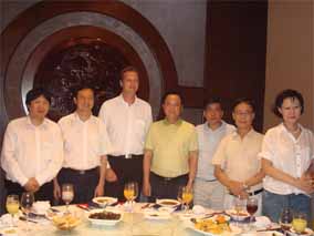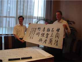 受深圳市政府的熱情邀請,博蘭斯勒總裁博思進(jìn)博士與中國區(qū) 總經(jīng)理方陽一行四人于7月18日再次到深圳市考察深圳投資環(huán)境, 在深圳市有關(guān)領(lǐng)導(dǎo)李平、夏楊及保稅區(qū)招商部何文斌部長的陪同下 參觀了深圳市保稅區(qū),深圳市有關(guān)領(lǐng)導(dǎo)詳細(xì)介紹了保稅區(qū)的投資情 況,目前國際著名大公司均在深圳保稅區(qū)有投資,博思進(jìn)博士對深 圳保稅區(qū)投資表示了濃厚興趣,并與深圳市文產(chǎn)辦鐘蔭騰主任洽談 深圳有關(guān)投資事宜。洽談會后,深圳文產(chǎn)辦林主任還特意為博思進(jìn) 博士揮毫潑墨,以示中德合作友好。深圳市領(lǐng)導(dǎo)及博思進(jìn)博士及方 陽總經(jīng)理一行以共進(jìn)晚宴,圓滿結(jié)束合作會談。