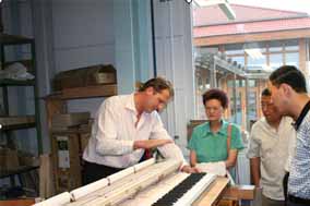 6月18日據(jù)博蘭斯勒德國(guó)總公司報(bào)道:近日琴島廈門 鼓浪嶼代 表團(tuán)一行在鼓浪嶼萬(wàn)石山風(fēng)景區(qū)管委會(huì)主任程建明的率領(lǐng)下到德國(guó) 萊比錫德國(guó)國(guó)寶博蘭斯勒總部訪問(wèn)并洽談第四屆鼓浪嶼鋼琴比賽的 各種事宜,洽談完畢在博蘭斯勒總裁博思進(jìn)博士的帶領(lǐng)下程建明一 行參觀了博蘭斯勒鋼琴生產(chǎn)線,博思進(jìn)博士并為客人介紹德國(guó)國(guó)寶 博蘭斯勒鋼琴的手工制作過(guò)程,客人紛紛贊嘆:果然名不虛傳原來(lái) 鋼琴工藝是這樣復(fù)雜精細(xì)不愧為德國(guó)國(guó)寶。