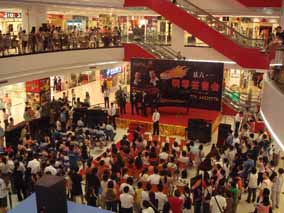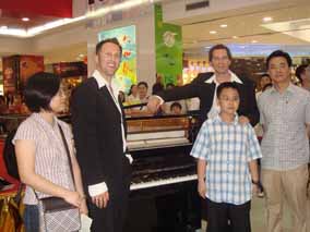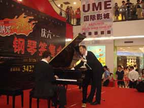 5月26 、27日下午“博蘭斯勒音樂(lè)基金會(huì)”主辦的 “歐米勒 孖寶”《鋼琴也瘋狂》全國(guó)巡演南方廣州站見(jiàn)面會(huì)分別在由廣百新 一城及廣百天河店拉開(kāi)了為時(shí)一個(gè)半鐘的極其瘋狂的瘋狂演出見(jiàn)面 會(huì)。當(dāng)天現(xiàn)場(chǎng)承辦方廣百出動(dòng)了十余名保安負(fù)責(zé)維護(hù)現(xiàn)場(chǎng),四名貼 身保護(hù)“歐米勒孖寶”,層層的人群把現(xiàn)場(chǎng)一樓至六樓圍得水泄不 通。