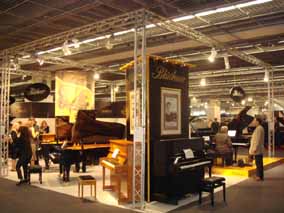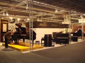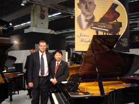 2007年3月28日-31日, 2007法蘭克福國際樂器展盛大開 幕?!癓ive for the music”-“音樂點(diǎn)燃生活” 是今年德國法蘭 克福 Musikmesse 的主題,作為全球最權(quán)威最專業(yè)的樂器展,吸 引了來自全球50多個國家的1500余家企業(yè)參展。德國博蘭斯勒鋼 琴公司依然以龐大豪華的陣容參展,公司總裁博思進(jìn)先生、中國公 司總經(jīng)理方揚(yáng)先生等高層領(lǐng)導(dǎo)悉數(shù)到場。展示有博蘭斯勒公司旗下 博蘭斯勒(Bluthner)、海斯勒(Haessler)、歐米勒( Irmler)、塞勒(Schiller )四個品牌。除了德國萊比錫原廠制造 的博蘭斯勒頂尖專業(yè)演奏三角鋼琴系列、海斯勒鋼琴、歐米勒鋼琴 ,還展示有博蘭斯勒鋼琴公司和匯豐樂器中國公司合作生產(chǎn)的歐米 勒、塞勒鋼琴。