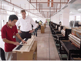 7月5日晚,德國(guó)博蘭斯勒鋼琴公司總裁博思進(jìn)先生抵達(dá)廣州。全然不顧旅途的勞累,6日一大早即興致勃勃的參觀德國(guó)博蘭斯勒鋼琴與廣東匯豐樂器合作建設(shè)的新工廠,對(duì)工廠正在工作的技術(shù)人員進(jìn)行了技術(shù)要點(diǎn)講解,并對(duì)新工廠的建設(shè)表示非常滿意。隨后,總裁一行參觀了博蘭斯勒鋼琴廣州專賣店。