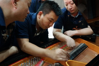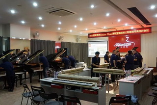 第一屆屆德國博蘭斯勒初級技師培訓(xùn)內(nèi)容涉及了立式鋼琴音色整理,擊弦機鍵盤演奏整理,涂裝維護(補漆拋光),常見技術(shù)問題解決方案等。而本屆的德國博蘭斯勒中級技師培訓(xùn)內(nèi)容則涉及了三角鋼琴的擊弦機整理,三角鋼琴的音色處理等問題。