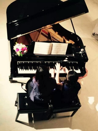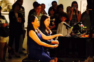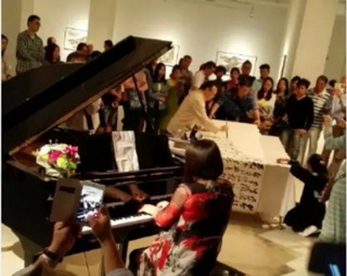 17日畫展現(xiàn)場,主辦方同時邀請了上海音樂學(xué)院旅歐青年鋼琴家唐瑾,朱和,謝亞雙子,江瀅攜手德國國寶博蘭斯勒旗下歐米勒鋼琴共同演繹書法與鋼琴的對話。