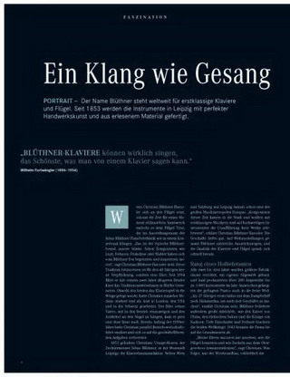 德國聯(lián)邦鋼琴協(xié)會主席、德國博蘭斯勒鋼琴集團(tuán)總裁ChristianBlüthner-Haessler(中文譯名博思進(jìn))博士近日再次應(yīng)邀登上了最新一期德國梅賽德斯奔馳雜志封面,為奔馳VIP貴賓客戶分享博蘭斯勒黃金音色的美譽(yù)。被譽(yù)為德國國寶的博蘭斯勒鋼琴,憑借著其百年流傳的精湛工藝與黃金音色,已經(jīng)成為奢侈貴族里的華麗符號,西方上流社交圈的衷愛……