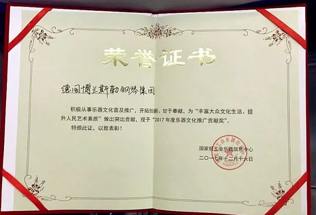 德國(guó)博蘭斯勒集團(tuán)榮獲《樂器》 “2017年度樂器文化推廣貢獻(xiàn)獎(jiǎng)”