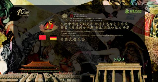 大大的數(shù)字“45”分別用中德兩國國旗的顏色組成,