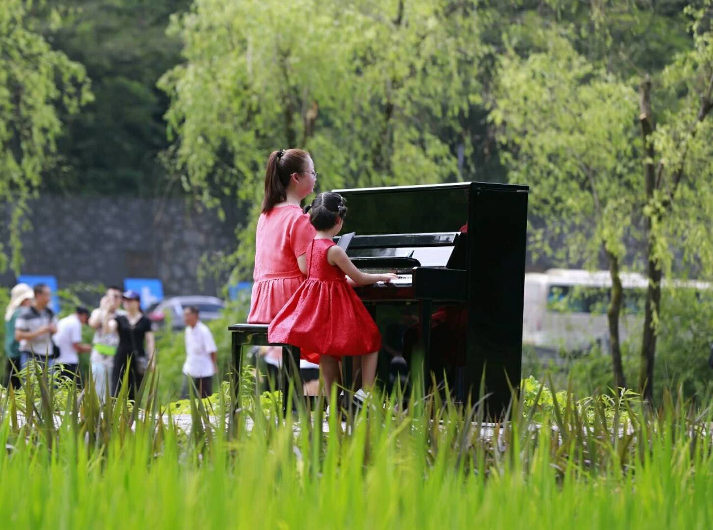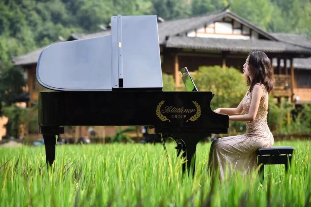 隨著《瀏陽河》、《在希望的田野上》、《歡樂頌》等大家熟悉的旋律響起,時而磅礴氣勢、時而溫婉輕柔,博蘭斯勒的黃金音色響徹仙境般的山川田野之中,余音裊裊,久久回蕩……118架鋼琴發(fā)出的悅耳琴聲,伴隨著美麗的苗族姑娘的翩翩身姿,在希望的田野上奏響同一個美好愿望,為黃龍點(diǎn)睛!