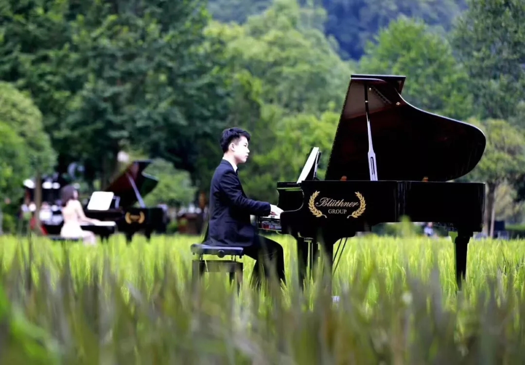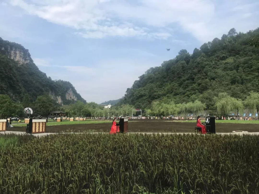 在中國著名鋼琴家元杰的磅礴詮釋下,博蘭斯勒的黃金音色在被陽光照耀的天子山巔被奏響;與此同時在相隔15公里的黃龍洞景區(qū),在微風(fēng)拂過的哈利路亞音樂廳的綠茵屋頂上;在一片金黃盡收眼底的曲折綿延的稻田中,在蜻蜓喚醒的八角亭內(nèi),在溪水推動的水車旁,這整片過百平方公里的天然舞臺,118架博蘭斯勒家族鋼琴與演奏者,共同奏響這場世界獨(dú)有的峰林音樂會!