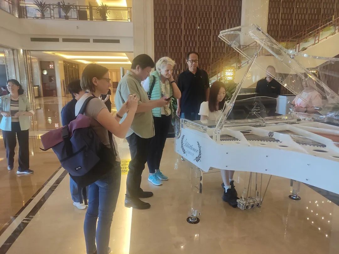 當參訪調(diào)研組一行人來到衡水訪客中心大堂時,引人注目的是一架霍普菲德水晶鋼琴,這臺鋼琴產(chǎn)于德國國寶·博蘭斯勒鋼琴集團旗下衡水德國隆尼施鋼琴產(chǎn)業(yè)園。