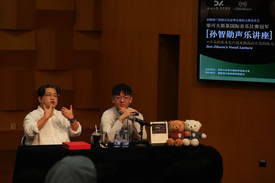 10月23日下午,韓籍歌唱家,聲樂(lè)演唱碩士孫智勛的聲樂(lè)講座《聲樂(lè)的基本發(fā)聲技術(shù)和高音開(kāi)發(fā)的練習(xí)方法》在深圳大學(xué)匯德樓B座音樂(lè)廳成功舉辦。