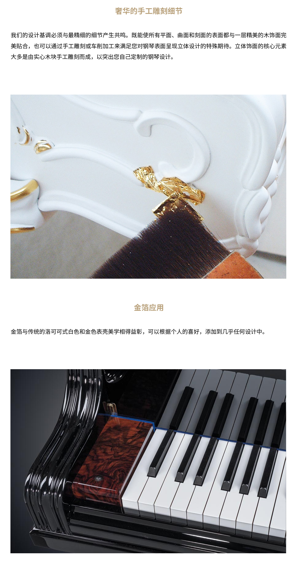 擊弦系統(tǒng)搭載于穩(wěn)固的橡木框架,獨(dú)具匠心的中斷式鍵床結(jié)構(gòu)能有效吸收擊弦過程中產(chǎn)生的自然機(jī)械噪音。由超過3000個(gè)獨(dú)立部件構(gòu)成的精密系統(tǒng),確保演奏者與聽眾盡享純凈音樂之境。